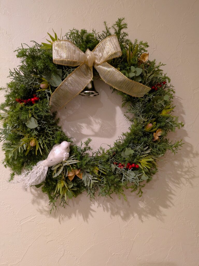 お好きなリボンやベル、自然のオーナメントを装飾してもらいました。